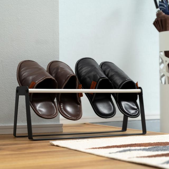 安定感のある横置きのスリム設計で廊下やリビングに置いてもすっきりコンパクトに収納出来るスリッパラックです。無駄を省いたスマートなデザインで、他のインテリアの邪魔をせず様々な空間に馴染みます。