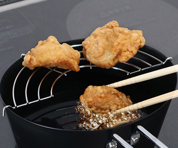 油切りに便利な揚げアミが付いています。