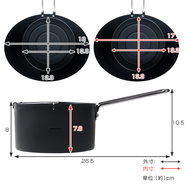 ![]() フライパン | ![]() 片手鍋 | ![]() 天ぷら鍋 |