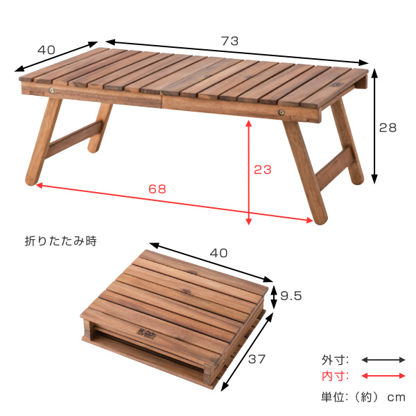 フォールディングテーブル ガーデンテーブル 折りたたみ 高さ28cm トートバッグ付 ( 木製 折り畳み ウッドテーブル 木 アウトドア ガーデン 庭 キャンプ ベランダ バルコニー ガーデンフィニチャー トートバッグ付き )