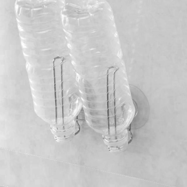 ペットボトルなどのボトル類を洗浄後、ボトルの口を差し込むだけで簡単に水を切ることができるエコハンガーです。吸盤付きで、壁面であればどこでも簡単に設置が可能です。ボトルだけでなく、洗った保存袋の水切りにもおすすめです。
