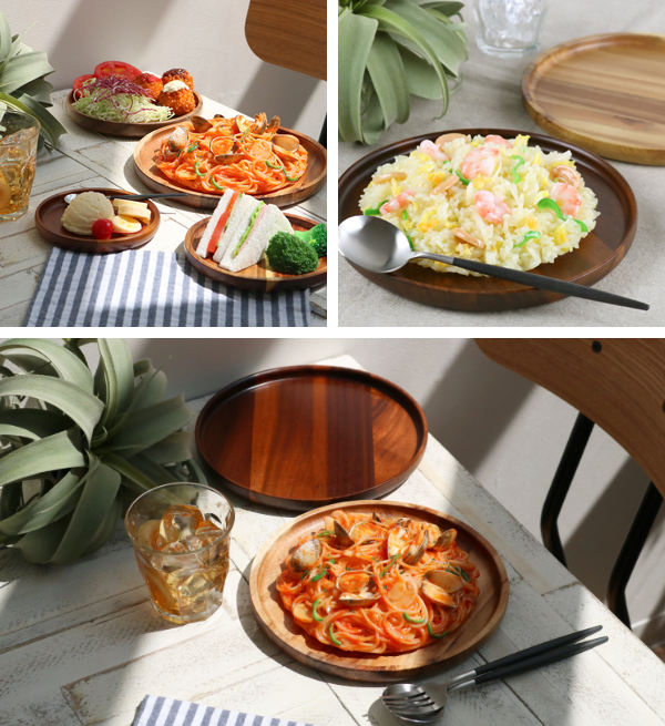 天然木の自然な木目が美しいプレートです。メイン料理や副菜を盛りつけたワンプレートランチなど、幅広くお使い頂けます。シーンを選ばず料理に馴染み、カフェのような雰囲気を楽しめます。