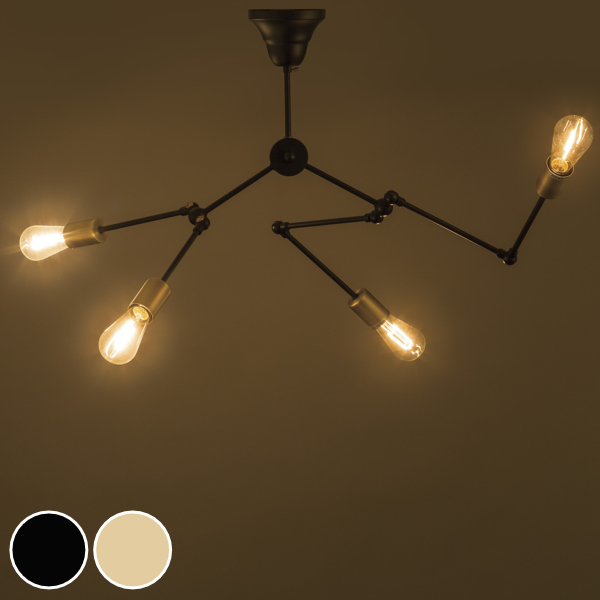 細いラインに4つのエジソン球がついた可動式ライトです。あたたかい光でお部屋を照らします。アンティークな雰囲気漂う落ち着いた色味の「ブラック」と、気品のあるゴージャスな印象の「ゴールド」の2色展開です。