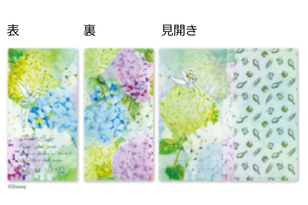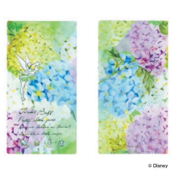 予備マスクや外したマスクを分けて収納できる、マスクケースです。あじさいと共にが描かれたティンカー・ベルのデザインは、お子様から大人まで幅広くお使いいただけます。