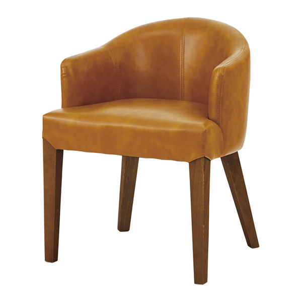 座面はソフトレザーを使用し、高級感ある仕上がりで、脚部には天然木(アッシュ)を使用したチェアです。明るいキャメル色がお部屋のアクセントになります。