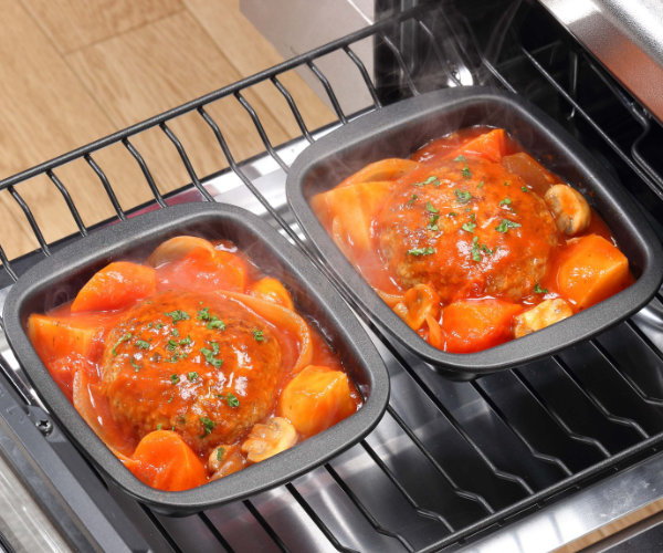 グリルやオーブンに2個一緒に入れられるサイズなので、2人分のおかず作りにはもちろん、お弁当作り等に違う種類のおかずを一気に作ることも可能です。