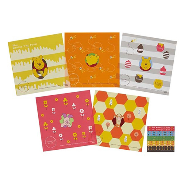 プーさんとその仲間たちの5種類の可愛いシートがそれぞれ2枚入っています。シートをとめるシールも付いています。安心の日本製です。電子レンジ・オーブンでは使えません。