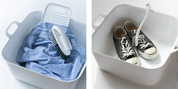 こちらが一つあれば、ちょっと洗いや浸け置き洗い、洗濯機に入れる前の予洗いから、ペットのお風呂まで、多用途に活用できます。四角で白いので清潔感もあり、空間をオシャレに魅せてくれます。