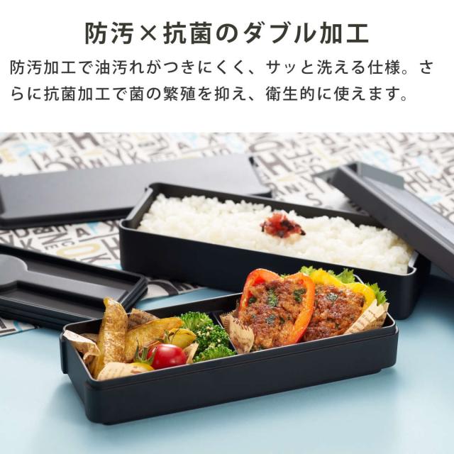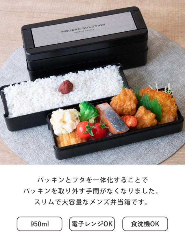 弁当箱 2段 950ml パッキン一体式 イージーケアランチボックス 箸 保冷バッグ付 男子 大容量 ( お弁当箱 ランチボックス 食洗機対応 レンジ対応 二段 男性 食洗機OK レンジOK お弁当 弁当 仕切り付き メンズ スリム )