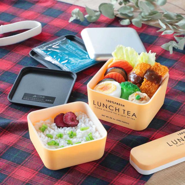 弁当箱 2段 600ml LUNCH TEA スクエアネストランチ ( お弁当箱 ランチボックス レンジ対応 食洗機対応 二段 女子 日本製 レンジOK 食洗機OK お弁当 弁当 保冷剤付き ランチベルト付き 入れ子式 女性 )