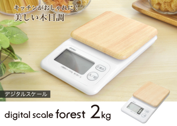 計量器 デジタル 2kg フォレスト ( スケール 計量 デジタル式 キッチンスケール 量り クッキングスケール 大画面表示 オートパワーオフ 木目 木目調 簡単操作 見やすい 電子計り 下ごしらえ キッチンツール )
