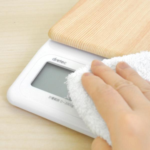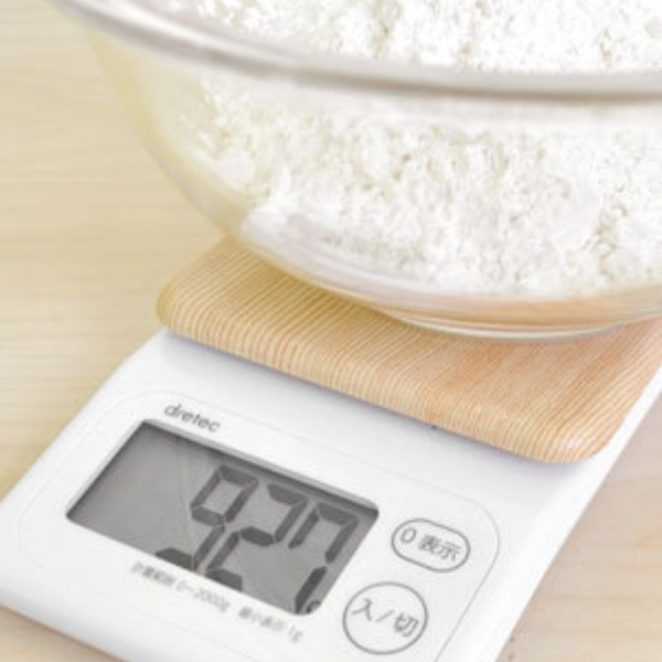 シンプルでおしゃれな木目調のデジタルスケールはご自宅のキッチンに調和しやすいです。画面が斜めになっているので、大きなボウルをのせても表示が隠れず、調理中の作業もスムーズです。見やすい大画面と大きなボタンも使いやすくて魅力的。自分用にもプレゼント用にもおすすめのデジタルスケールです。