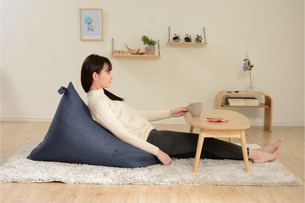 腰を預ける事のできる背もたれ付きのクッションは、背の低いローテーブルやセンターテーブルとの相性抜群です。また、横になって寝転びながらお昼寝するのにもオススメです。
