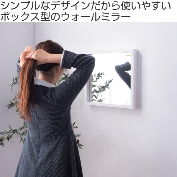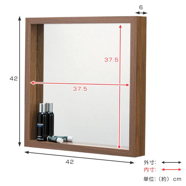 ミラー 幅42cm 壁掛け 鏡 ウォールミラー 木製 かがみ ボックス 正方形 飛散防止 姿見鏡 壁掛け( カガミ 姿見 壁掛け鏡 壁掛けミラー 壁 掛け 吊り下げ 玄関 リビング 四角 木製ミラー おしゃれ )