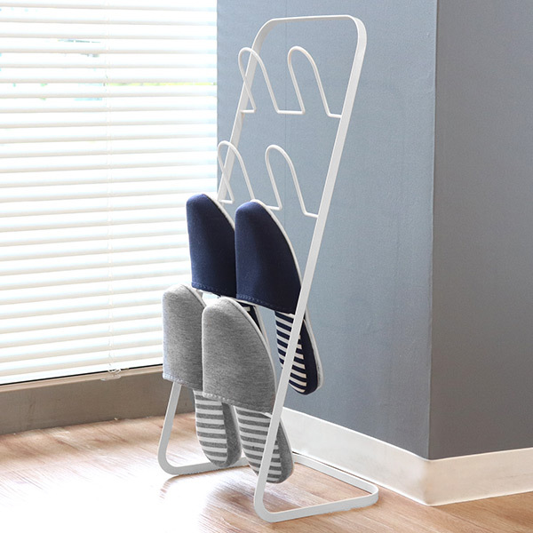 内側のフレームは絶妙な角度が付いており、スリッパが出し入れしやすい仕様になっています。つま先まで入れられるので、型崩れを防ぎます。