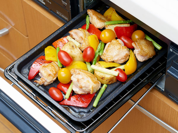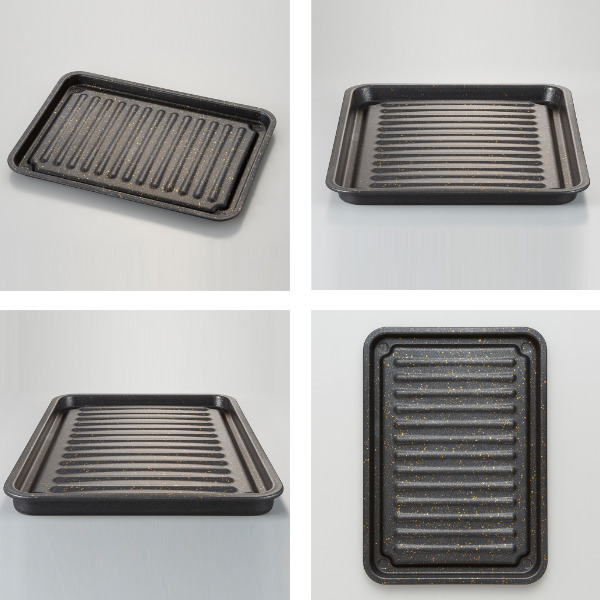 波形の油きりのおかげで、溜まった油をキッチンペーパー等でサッと拭けてお手入れ簡単です。油が出るお魚、お肉料理、野菜にも使え、グリル料理の幅が広がります。簡単に料理ができる丁度良いサイズのトレーです。