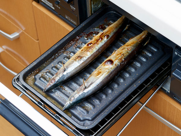 「皮はパリッ!身がふわっ!焼き魚が好きになる。」油でベトベトになるスポンジ、網に残るこびり付き。嫌いだった焼き網洗いが、グリルトレーを使えばすごく楽に!お子様が好きな鮭も良い感じに焼けて、家族に喜ばれること間違いなし!