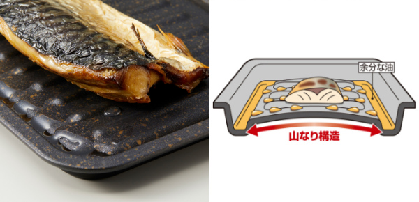 周りの深い溝が油をキャッチしてくれるので、食材がカリッと焼けます。