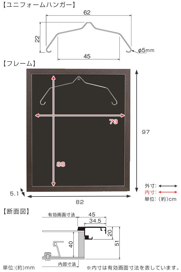 ユニフォーム 収納 ユニフォーム額 L203 Mサイズ フレーム セピア ( 額 ディスプレイ 額縁 ユニフォームケース 扉式 M 壁掛け コレクション ディスプレイケース バックボード 7色 飾る ハンガー Tシャツ インテリア )
