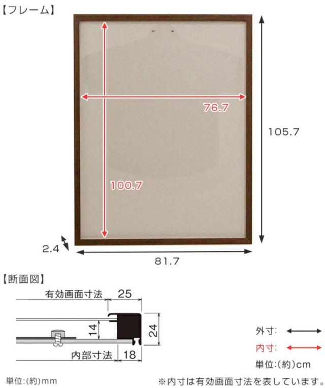 | サイズ | 外寸:約 幅81.7×奥行2.4×高さ105.7(cm) 内寸:約 幅78.1×高さ102.1(cm) 有効画面寸法:約 幅76.7×高さ100.7(cm) 重量:約 4.8kg |