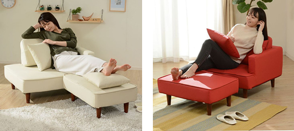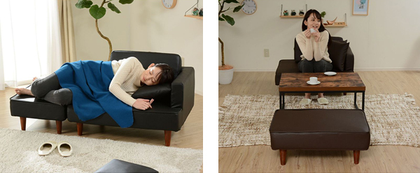 お部屋の間取りやシーンにあわせて自在に動かせるので、限られたスペースにフィットします。お好みの生活スタイルに合わせて様々な使い方ができる便利なソファです。