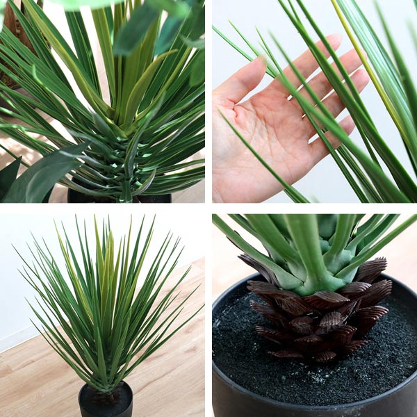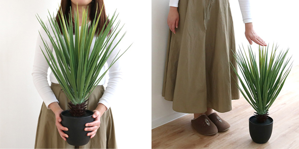 葉の部分は肉厚でマットな質感です。ワイヤーが入っているので、お好みの角度に広げられます。葉の向きや枝の配置を変えることで、印象を変えることもできるので、家具やインテリアとのイメージに合わせられます。お好みのポットカバーに入れても素敵なインテリアになりそうです。