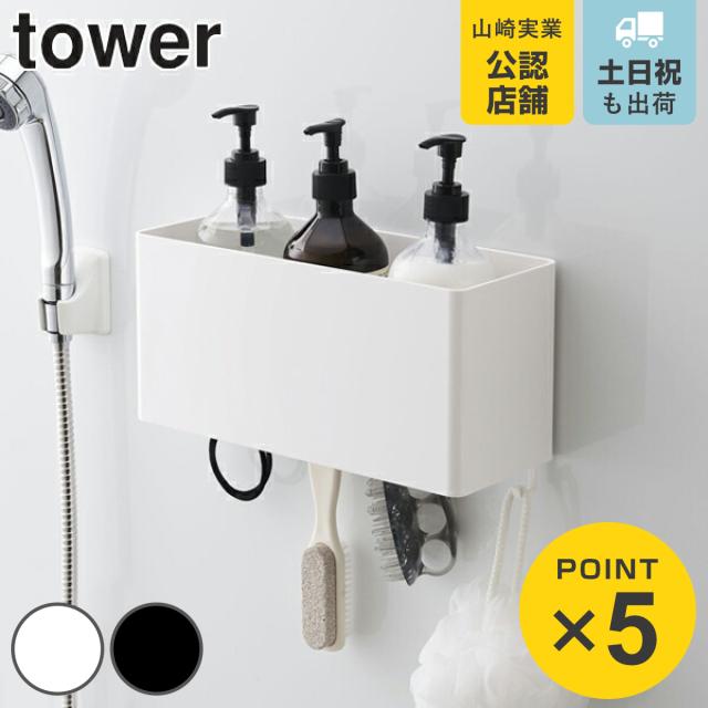 洗面収納 マグネットストレージバスケット タワー tower 山崎実業 バス収納 ( 洗面用品 収納 マグネット 磁石 洗濯機横 洗濯用品 バスブーツ 洗剤 ボトル フック付き 掃除用品 キッチン用品 冷蔵庫横 山崎実業 マグネット バスルーム タワー)