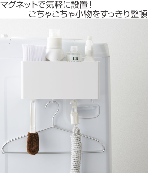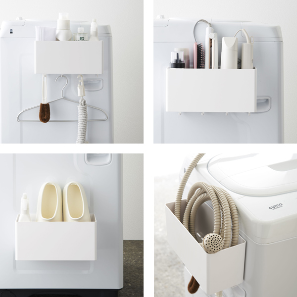 洗濯機やマグネットのくっつく壁面に取り付けて、散らばる小物をひとまとめにできるマグネットストレージボックスです。洗濯に使う洗剤類やブラシ、洗濯ホース、バスブーツなど、ここにまとめてしまえばすっきりと整頓され、作業もスムーズに行えます。またシンプルなデザインなので空間に馴染みが良く、スタイリッシュに見せられます。