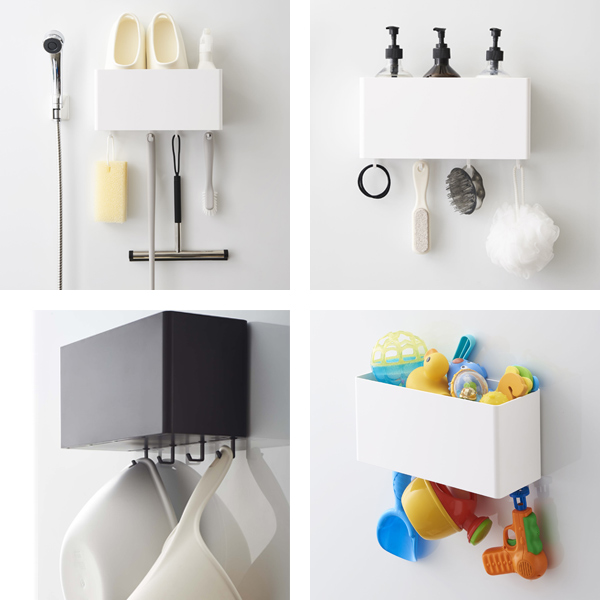 水切れのよいデザインなのでバスルームでも快適にお使いいただけます。ディスペンサーや湯桶、掃除用具などを浮かせて収納することで、風通りよく衛生的にお使いいただけます。清潔に保ちたいお子様のおもちゃラックとしてもおすすめです。