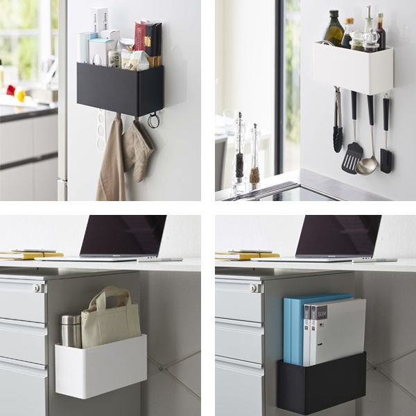 シンプルなデザインだからこそ、使うシーンを選ばず様々な場所で活躍します。キッチンではラップやポリ袋、布巾といったサッと取り出したいものの収納に。キッチンツール、調味料置き場としても最適です。またオフィスのデスク下につけてデッドスペースを活用すれば、デスクをより広く使うことができおすすめです。