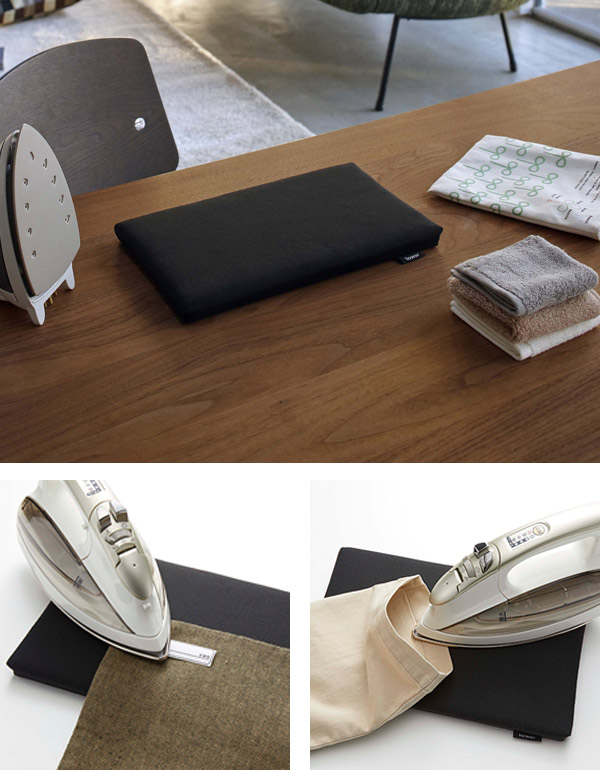 大きなアイロン台を出すまでもないような、ハンカチなどの小物のアイロン掛けに最適なコンパクトサイズのアイロンボードです。お子様のネームタグや裾直しの際にもちょうど良く、サッと出してサッとしまえるサイズ感が魅力です。