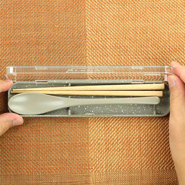 小ぶりで長めのスプーンと、18cmの箸がセットになっているので、ランチタイムにスープがあるときや、丼物やオムライスのお弁当のときに使いやすくて便利です。
