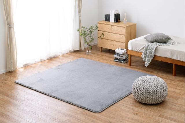 センターラグとしても使える正方形タイプで、ファミリーサイズのリビングにもちょうど良いサイズです。