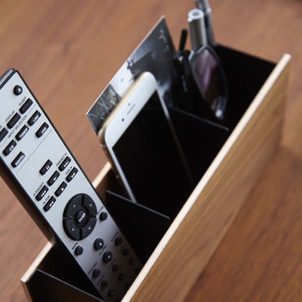 リビングなどでよく探してしまうリモコンや携帯電話、バラバラに置きやすいペンやメガネなど一括収納。仕切りが3つ付いており、小物の指定席ができ紛失防止や整理整頓ができる優れものです。