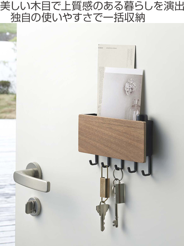 ホルダー付 マグネットキーフック リン RIN 木目調 木製 ( キーフック マグネット 玄関 壁掛け 磁石 鍵掛け フック 鍵 収納 小物入れ 小物収納 小物 ホルダー 玄関収納 マグネットタイプ 鍵収納 )