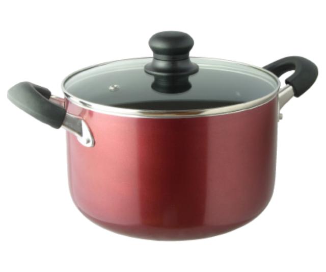 半寸胴鍋 22cm IH対応 キュイジーヌ ガラス蓋付き ( ガス火対応 両手鍋 パスタパン 22センチ 両手なべ 深型鍋 パスタ鍋 調理鍋 アルミ鍋 なべ 鍋 フタ付き 蓋付き フッ素樹脂加工 調理器具 レッド 赤 )