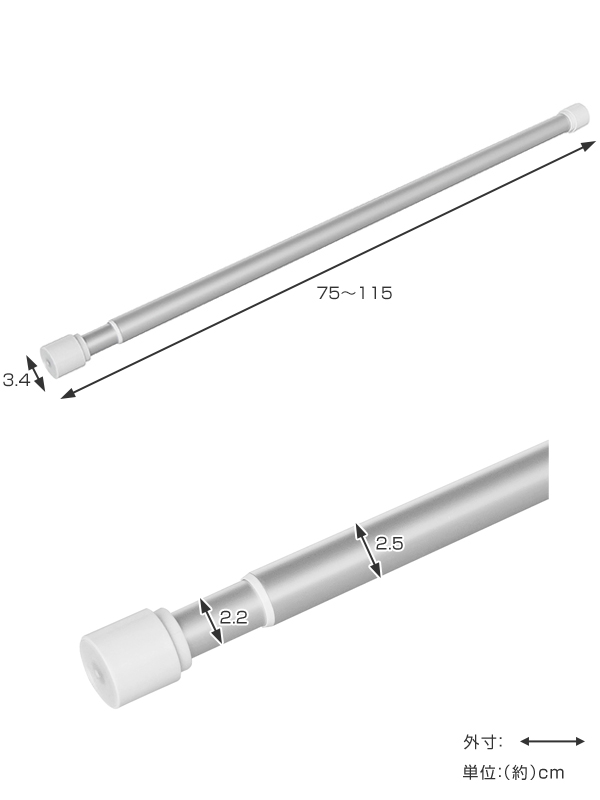 突っ張り棒 75cm〜115cm アルミ軽量突ぱりポール 洗濯 ハンガー 物干し竿 ( つっぱり棒 浴室 室内干し 伸縮 伸縮自在 突っ張りポール シャワーカーテン アルミ サビにくい 軽量 浴室干し 75〜115 ドア枠 トイレ )