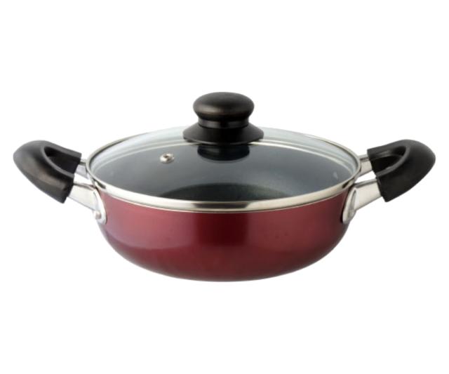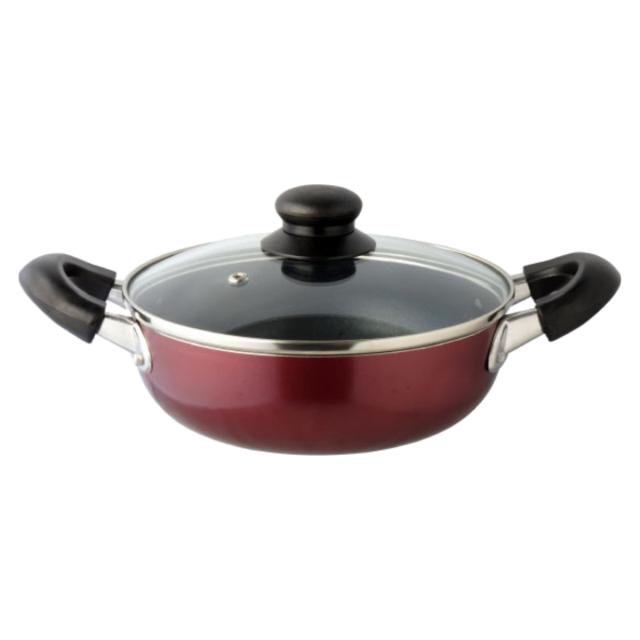 両手鍋 20cm IH対応 キュイジーヌ ゆったり多用途鍋 ガラス蓋付き ( ガス火対応 両手なべ 調理鍋 20センチ アルミ鍋 なべ 鍋 フタ付き 蓋付き フッ素樹脂加工 調理器具 レッド 赤 )