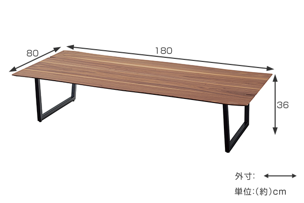 座卓 ローテーブル 木天板 ミニマルデザイン Luca 幅180cm ( テーブル リビング センターテーブル 机 リビングテーブル 木目 木製 ウォルナット スチール脚 北欧モダン ナチュラル ブラウン 茶色 おしゃれ 幅180 180cm )