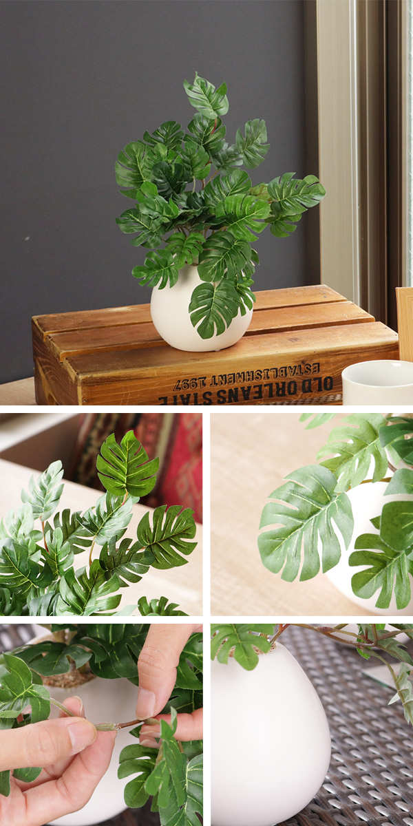 人工観葉植物 モンステラ 19cm フェイクグリーン 造花 光触媒 ( ミニ 卓上 人工植物 フェイク アートグリーン 触媒加工 抗菌 消臭 緑 グリーン 癒し リラックス 植木 樹木 人工 枯れない 水やり不要 簡単 おしゃれ インテリア 飾り )