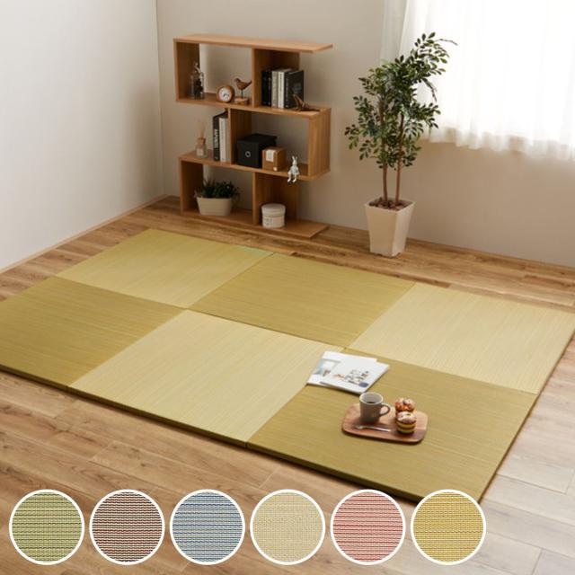 ユニット畳 置き畳 綾川 約82×82 滑り止め付き 6枚セット ブルー ( 畳マット 畳 ラグ マット い草 軽量 コンパクト 移動 楽々 簡単 設置 システム畳 フロア畳 フローリング畳 軽い フローリング 手軽 和室 洋室 厚み 滑り止め )