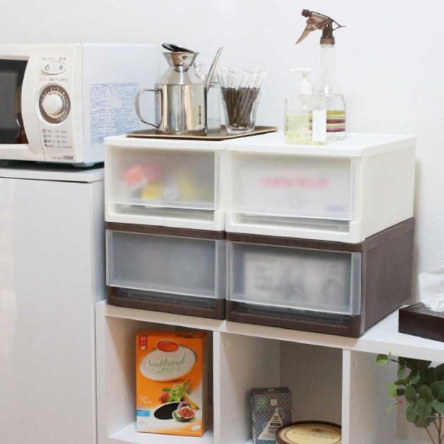 食品・日用品ストック、タオルなどの収納や、クローゼットで衣装ケースとしても使いやすいサイズです。A4クリアファイルが入るので、オフィスやデスク周りの収納棚としても役立ちます。