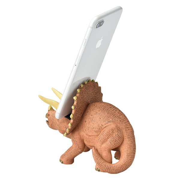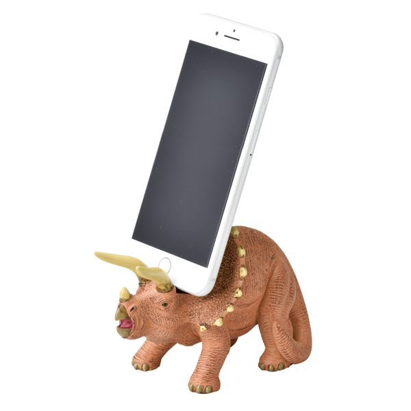 トリケラトプスの頭のフリルがスマートフォンを支えます。