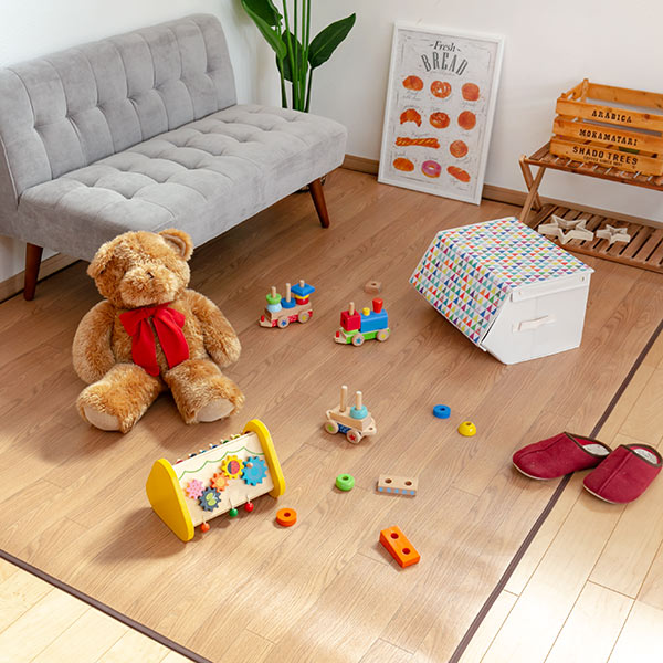 ラグを敷くだけで床をフローリングにイメージチェンジすることができます。部分的に畳をフローリングに変えたい、インテリアに合った床の色にしたいという際にもおすすめです。ほどよいクッション性があるので、家具の跡やキズから床を守る効果もあります。