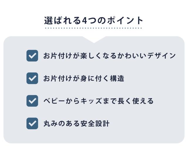 ボックスの中にポイポイ入れるだけで何がどこに入っているかが一目でわかるデザイン。「なにがはいってたかな? どこにおかたづけするの?」とお子様が迷う心配がありません。お気に入りのキャラクターと一緒に簡単に楽しくお片付けの習慣が身につけられます。