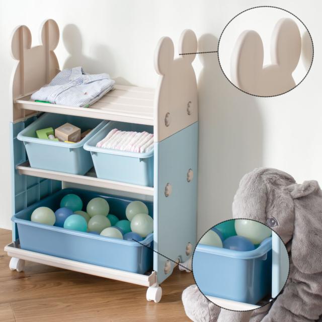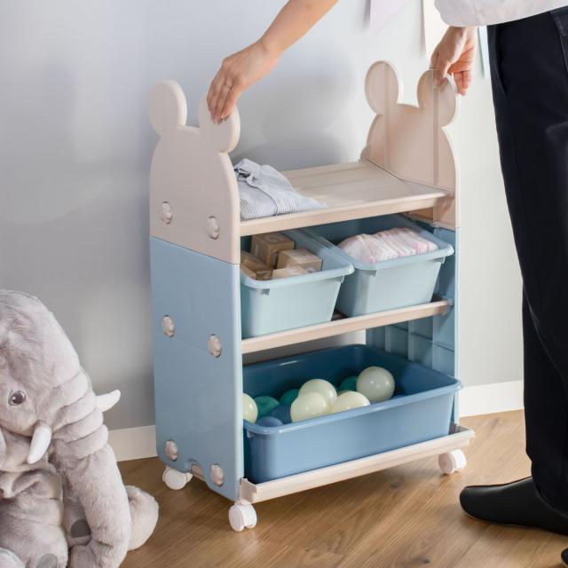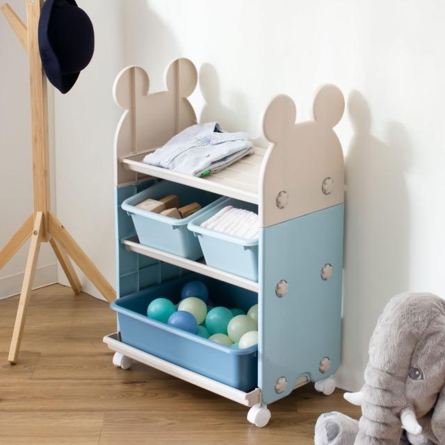 おもちゃ 収納 ラック ミッキーマウス トイステーション エクリュシリーズ ( ベビー 赤ちゃん 収納ワゴン バスケット 棚 おもちゃ箱 キャスター 工具不要 キッズ収納 3段 幅50 子供用 子供部屋 キャラクター ミッキー )
