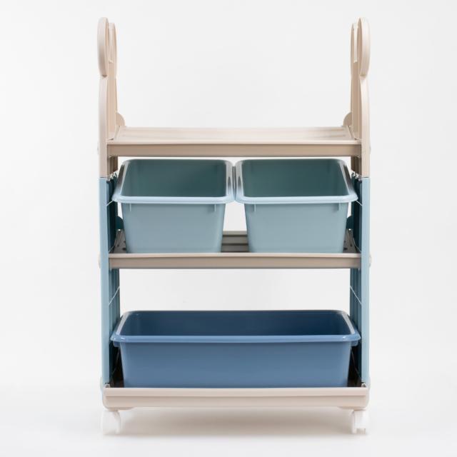 おもちゃの出し入れがしやすく、お部屋に圧迫感も与えない程よい高さです。上段・中段は、前に傾く設計になっているので、収納ボックスを置いたときも中が見やすく、お気に入りの絵本を並べることもできます。