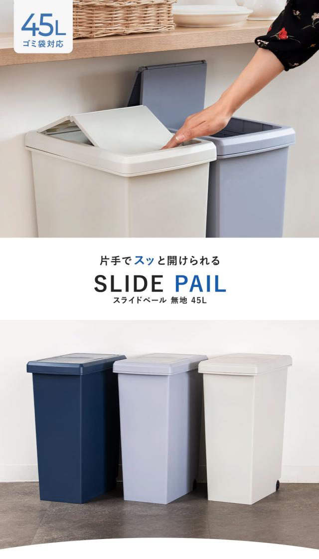 ゴミ箱 45L スライドペール 無地 ふた付き ( ごみ箱 45リットル スリム スライド蓋 キッチン 分別 ダストボックス 縦型 蓋つき キャスター付き 袋止め付き シンプル おしゃれ )