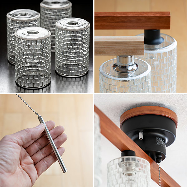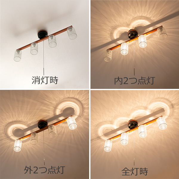 シーリングライト 照明 バータイプ 木アーム 4灯 ナチュラル ( 照明器具 ライト シーリング led リビング ダイニング モザイクガラス 店舗 カフェ お店 木製 癒し 取り付け 簡単 )