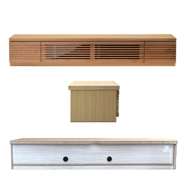 | 材質 | 表面材:ウォールナット(ウォールナット無垢材)、オーク(オーク無垢材) 天板材:プリント化粧紙 側面材:プリント化粧紙 塗装:ポリウレタン塗装 |